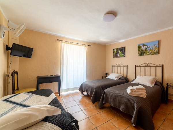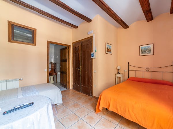 Esta habitación cuenta con tres camas individuales o una cama doble + una cama individual y baño privado con secador de pelo y toallas. Hay TV de pantalla plana, , ropa de cama y toallas